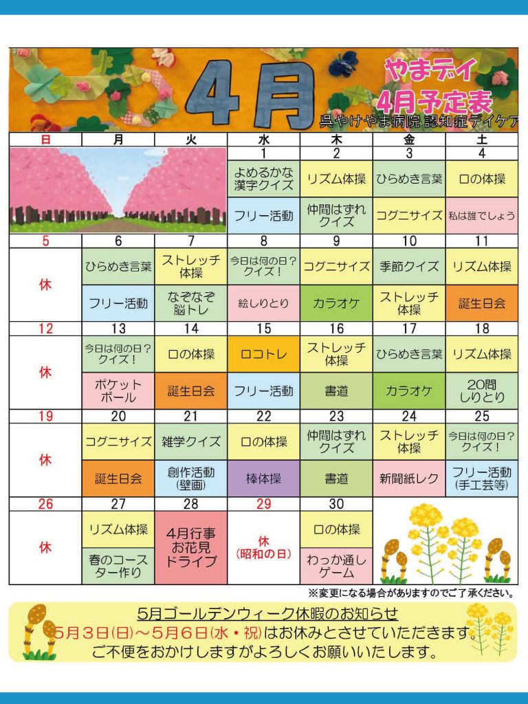 認知症デイケア~2026年4月の月間プログラム~